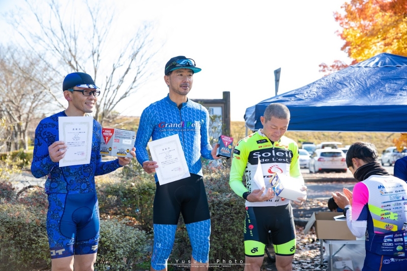 パッと見た感じで逃げた2人を除いた先頭集団に40代と50代の人が僕(40代)と片岡さん(50代)以外に見当たらなかったから、片岡さんに年代別の優勝は確定したから後は若者に譲って安全にゴールしましょうと持ちかけた、年寄りは万が一怪我したら長引くと思ったのだか余計な事したかなぁ。