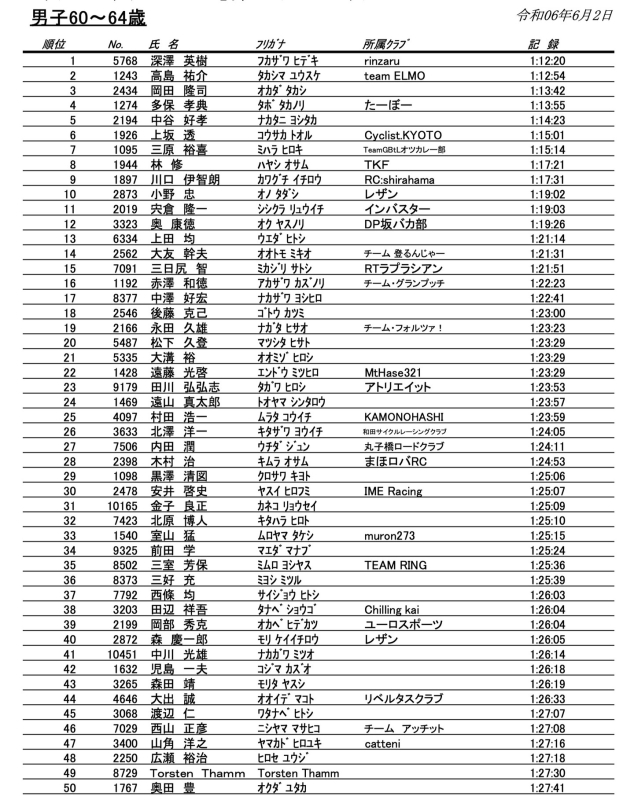 第20回Mt.富士ヒルクライムの正式リザルトが掲載されていました。男子60〜64歳 1:22:23(16位/342名)。