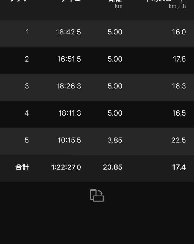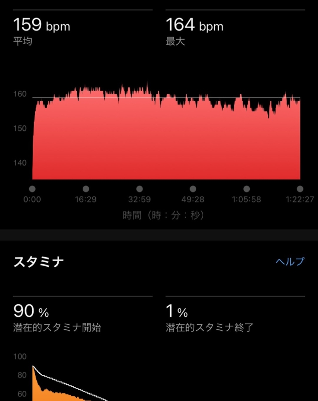 Garmin見てもきっちり最初の5kmで黄色信号。