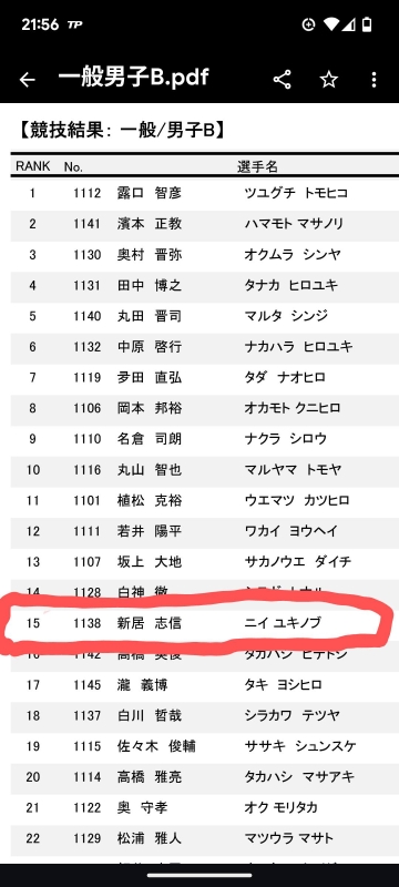 新居志信選手のレポート