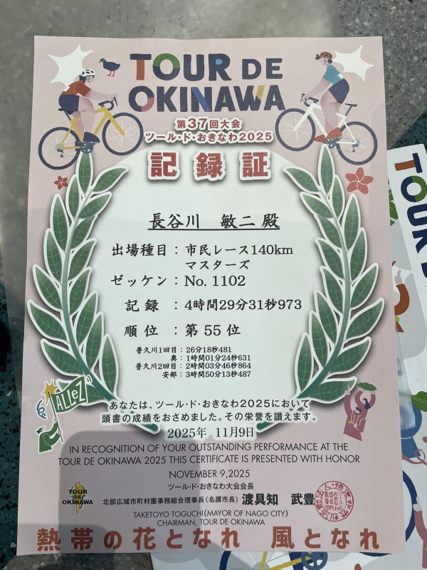 第37回 ツール.ド.おきなわ2025マスターズ140キロに出場。