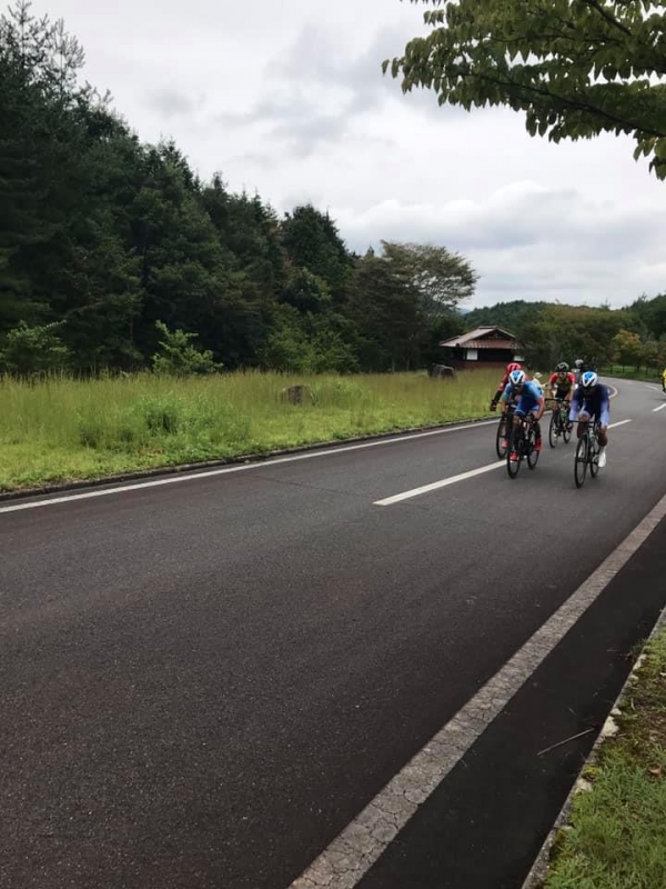 三段坂はたぶんZEROの選手だと思う、がアタックしてペースアップ、集団が伸びきる前に展望台からの下りで再び一つに。