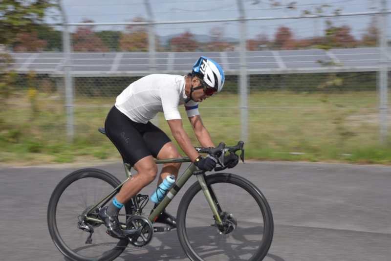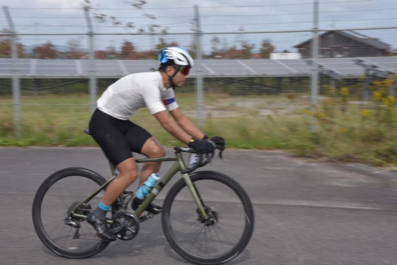 鳥取の選手と難波くんがローテ飛ばしがちになり巡航速度が落ちそうだったので切り離して独走しようかと思った矢先にメイン集団から1名ブリッジしてきて5名に…が、この周回で難波くんは千切れて結局4名に。