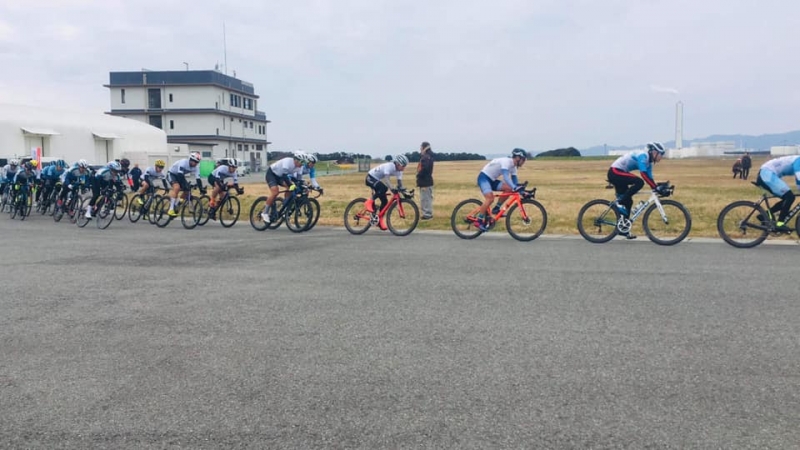 アップ無しのスタートなのでしばらく集団待機…横風区間もあり慣れている人と慣れていない人で走り方がわかれる。